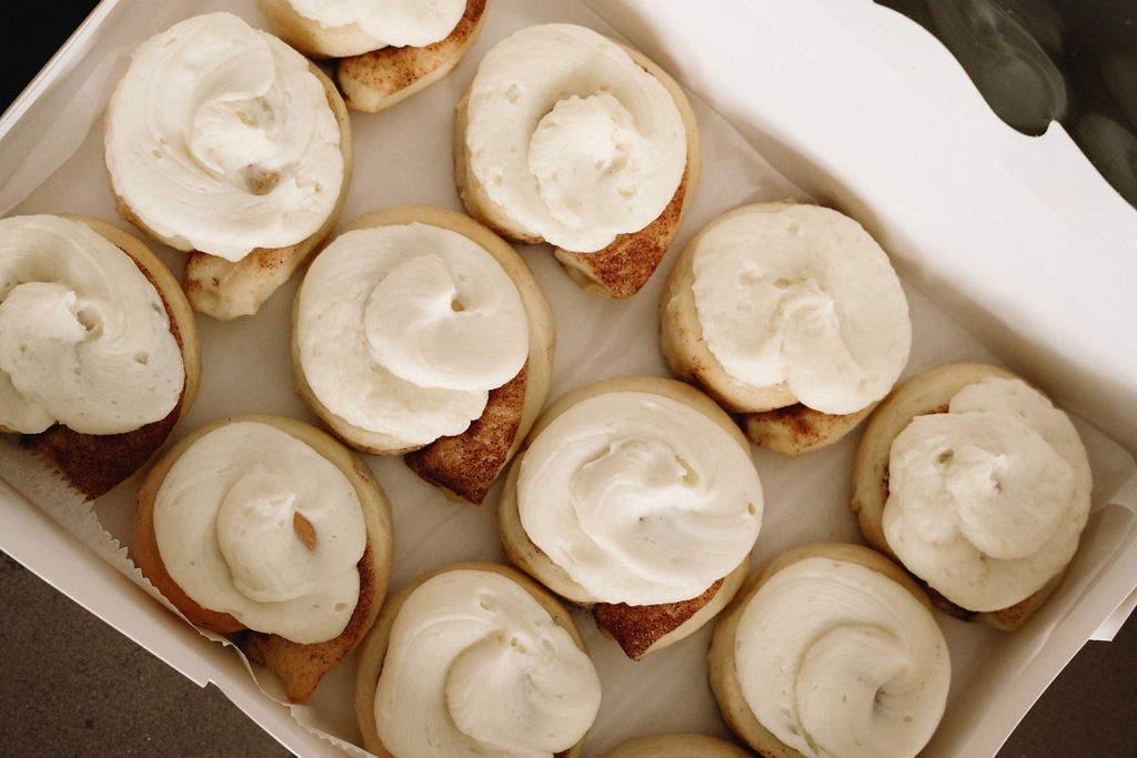 Size: Each cinnamon role is approximately 2" wide, though size may vary.